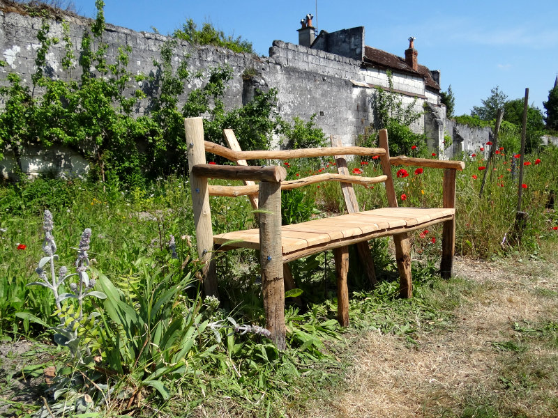 « Chez Michel et Agnès, le tour de jardin est prétexte à histoire : histoires magiques des végétaux venus de beaucoup d’endroits et histoires drôles de tous les instants, prétexte aux larges sourires. Comme l'on se sent bien, avec Brice, nous faisons un petit banc rustique, comme ça, pour le plaisir, et, nous l’espérons, pour celui de beaucoup. »