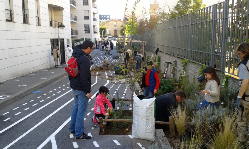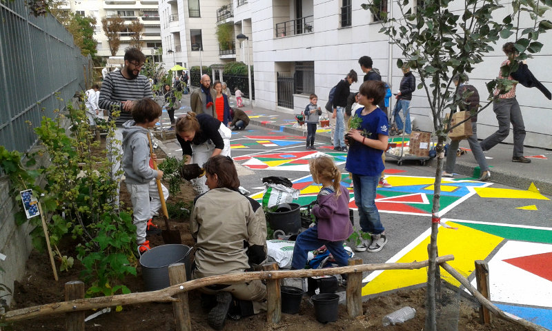 Avec les services de la ville de Courbevoie, le collectif Coloco, Surface totale et, bien entendu, les habitants du quartier, transformation en un week-end de l’allée des vignerons en une promenade plantée.