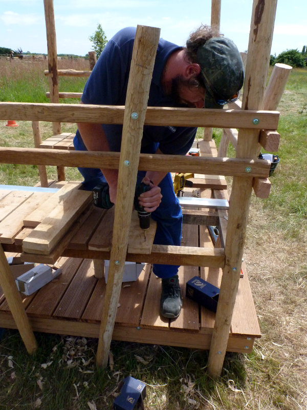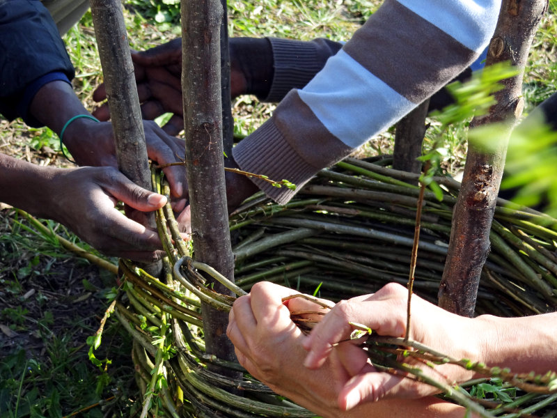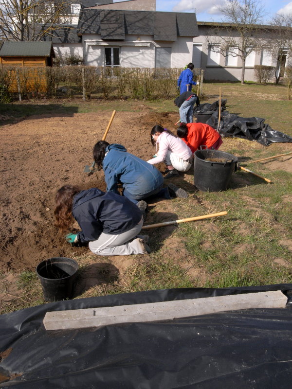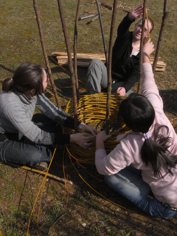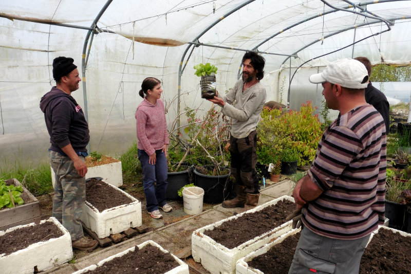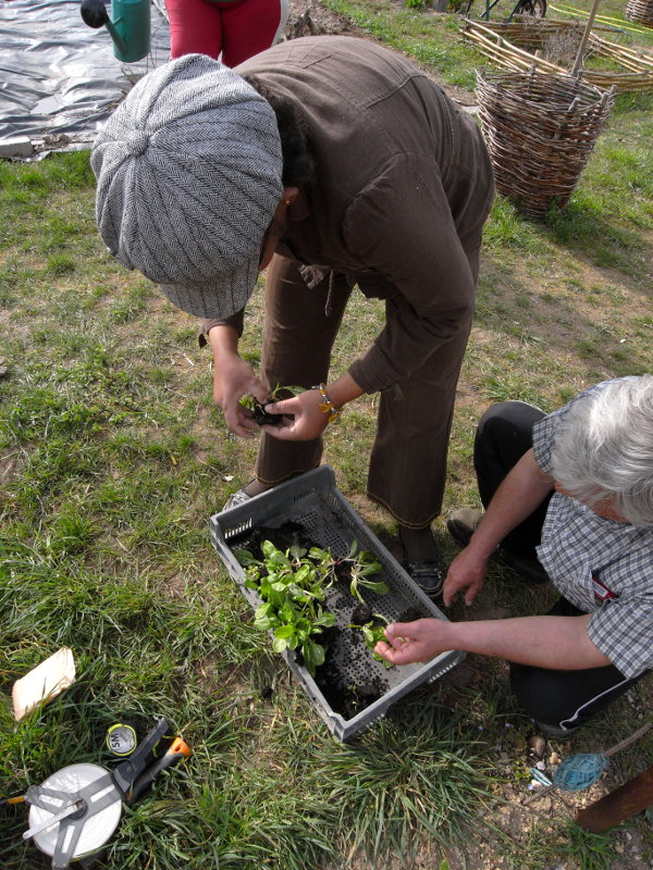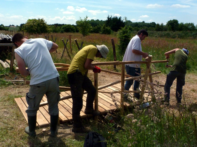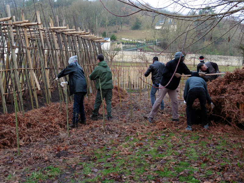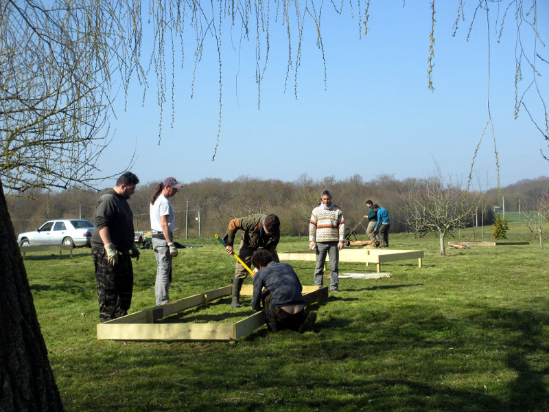 Les parcelles ont vu le jour progressivement grâce au travail de Souffleurs de Vert, mais aussi grâce à la présence sur place et au talent de Thierry, d’Éric, de Jonathan et de Pascal (pour qui nous avons une pensée), qui ont œuvré à la réalisation des structures bois, métal et pierres, aux rénovations, aux plantations d’arbres fruitiers et de la grande diversité végétale en général, volet incontournable du projet et qui oeuvrent maintenant au maintien et à l'évolution.