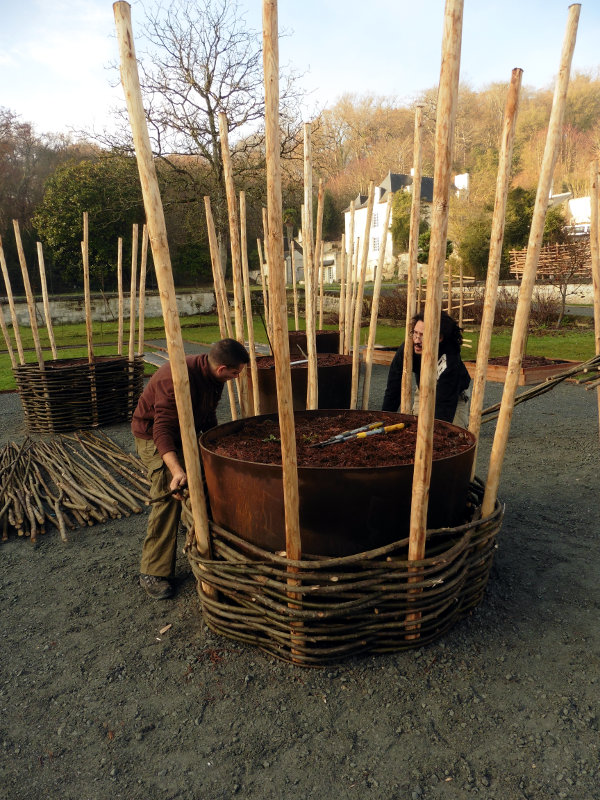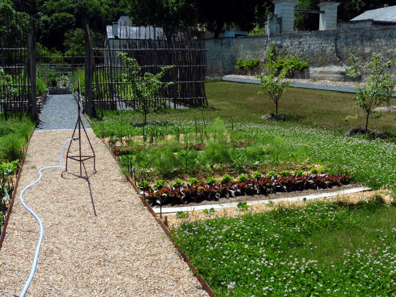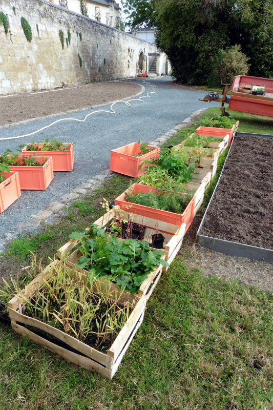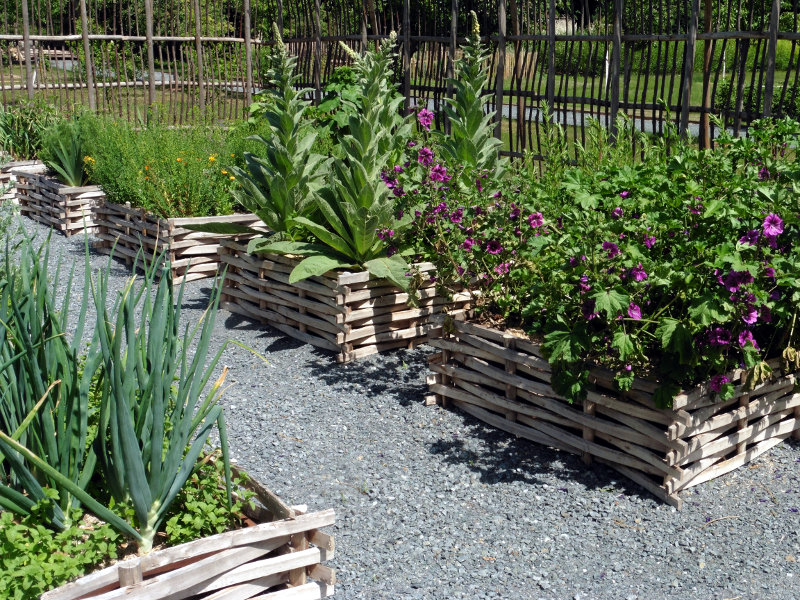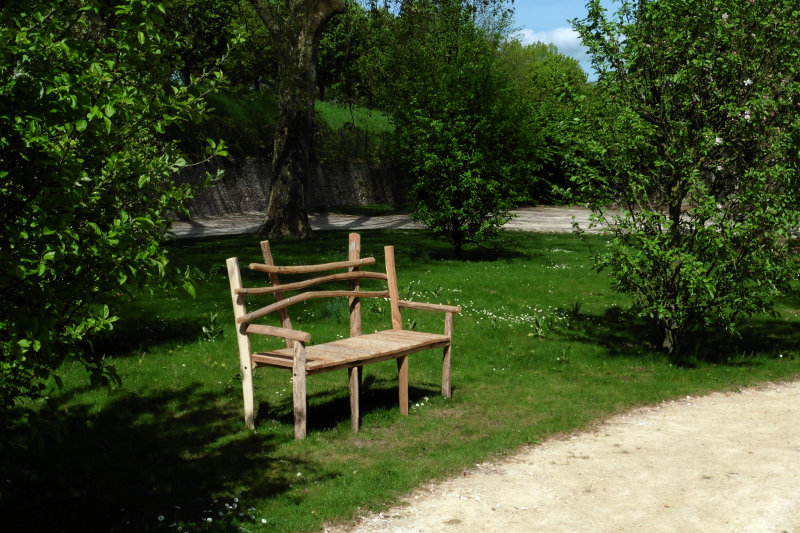 Au Prieuré de Saint-Cosme, Souffleurs de Vert a défini la palette végétale et construit, avec les jardiniers du lieu, du mobilier rustique.
