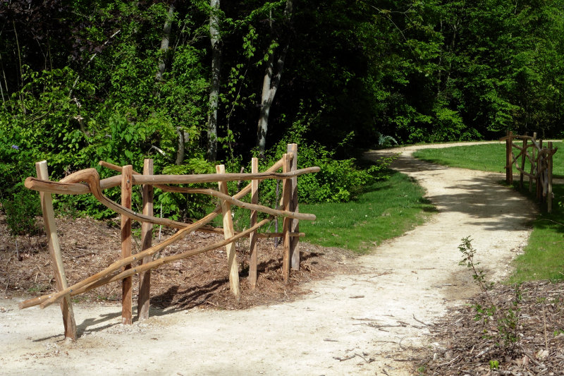 En 2016, suite à la création du nouveau jardin les années précédentes, Souffleurs de Vert a accompagné la mise en œuvre de bancs et barrières toujours en lien direct avec l’équipe du site. Ces nouveaux éléments viennent accompagner les visiteurs dans leurs déambulations : les barrières signalent, orientent ; les assises permettent de se 'pauser' allègrement.