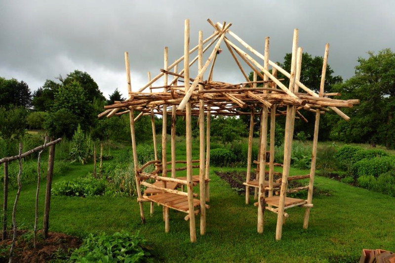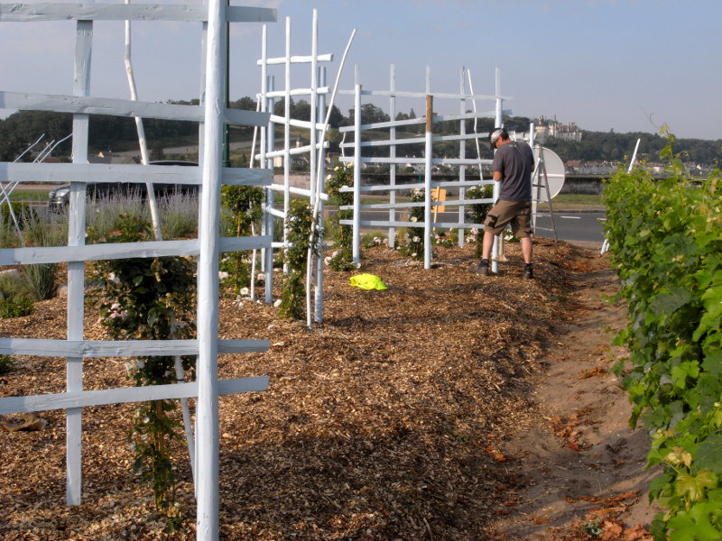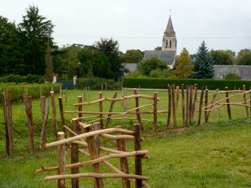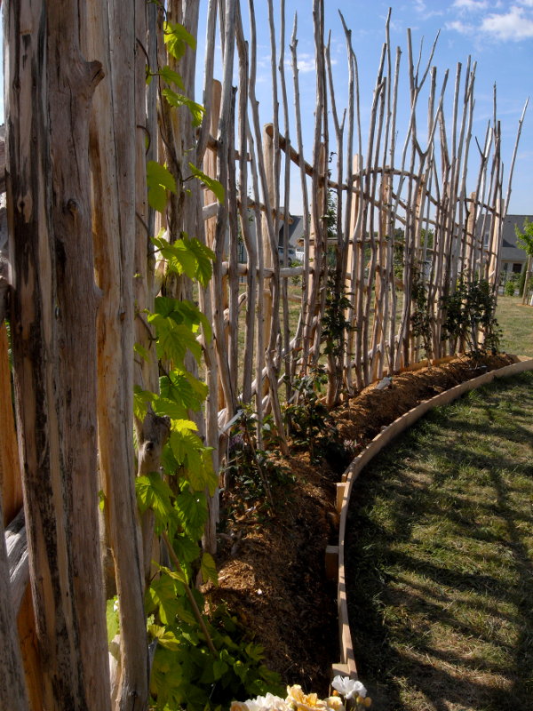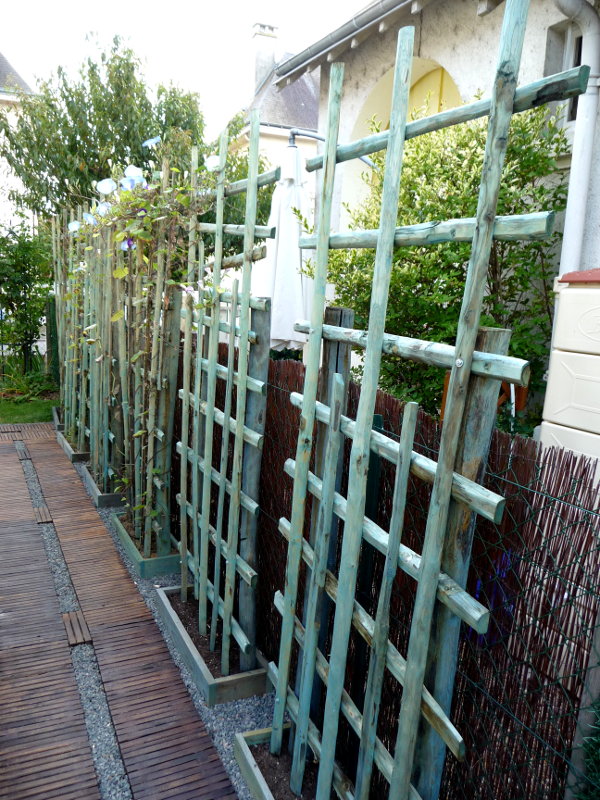 Écrans en châtaigner et cuivre dans un passage étroit |